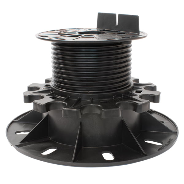Each joist support pedestal comprises a base stand, threaded adjustment collar and support head. Adjustable from 60mm to 115mm (2⅜'' - 4½'') as standard. Clip in extenders in 50mm, 100mm (2'', 4'') heights are available.