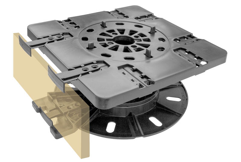 The Top Plate and Lateral Clip are made of PP, they are used for the lateral (vertical) finishing of the edges of the raised floor in the absence of a lateral wall. Specifically designed for application with Arkimedes paving supports only.