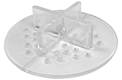 X shape tile spacer support stand for indoor or outdoor use on pre-leveled areas. 100 pieces per bag. Made of PP (polypropylene). Used as a spacer with ceramic tiles.